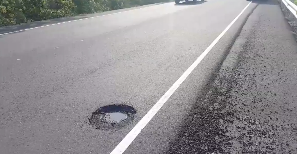 En un video tomado por el ciudadano Juan Carlos Canales, muestra uno de los hoyos que ya están formados sobre el pavimento. «Sinceramente no nos merecemos los sureños una pésima obra de construcción», explica en el vídeo mientras señala el cráter.